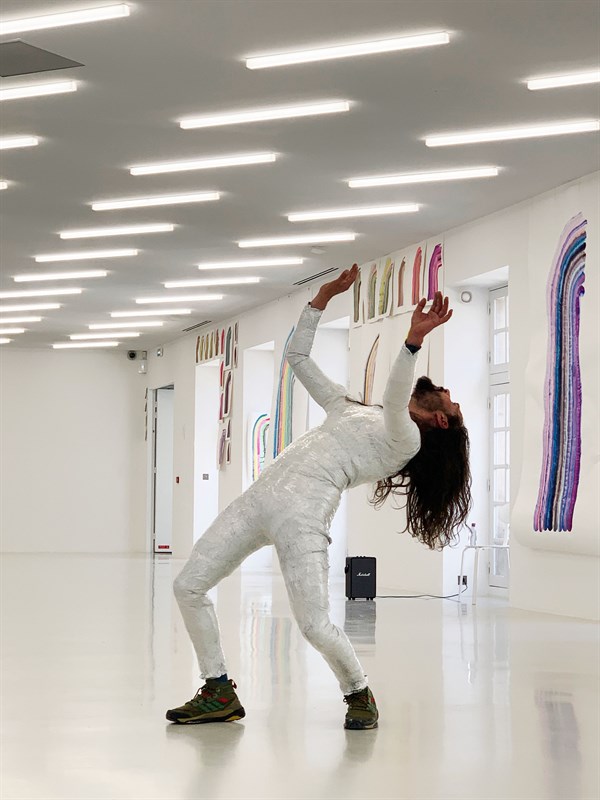 Au printemps 2022, à l’invitation de la Collection Lambert, le danseur-plasticien effectue une résidence, bouclée par une performance au premier étage de l’Hôtel de Montfaucon. L’année suivante, il revient en ces lieux, à l’initiative de Massimo Fusco, danseur-masseur-chorégraphe, artiste associé au Centre de Développement Chorégraphique National d’Avignon.