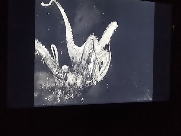 L’amorce de la visite s’effectue sous le regard attentif, un tantinet narquois de la Pieuvre, filmée en 1927 par Jean Painlevé (1902-1989), pionnier du documentaire animalier.