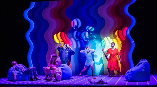 Dirigé par Jonathan Tunick, chorégraphié par Dewan Jones, mis en scène par James Bonas, la proposition, sur fond de Pop Art et de compositions cinétiques, réanime les questions d’émancipation abordées, au cinéma, dans les comédies de mœurs de l’époque : Bob, Carol, Ted et Alice (Robert Makursky 1969), Ce plaisir qu’on dit charnel (Mike Nichols 1972).