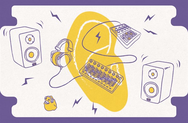 Épicerie sonore, composition collective, bandes magnétiques, gros tas d’enceintes avec des sons dedans et bien d’autres activités, participent à l’initiative qui priorise la pratique à la démonstration.