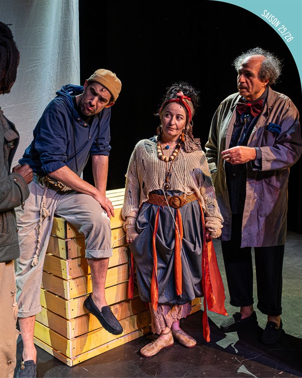 Sur scène siège un quai. Par les pinceaux lumineux chers à Sébatien Lebert, quelques caisses, une toile deviennent vaisseaux conquérants ou frêles embarcations, espaces édéniques ou repaires dangereux. Le voyage d’Ulysse devient le fil conducteur d’une histoire de l’humanité tissée par d’inéluctables migrations. Souvent sans retour, ces mouvements génèrent d’accablantes injustices qui, au fil du temps et par la grâce de génies imprécateurs ou consolateurs, engendrent d’impérissables beautés, de la cathédrale littéraire à la musique jazz.